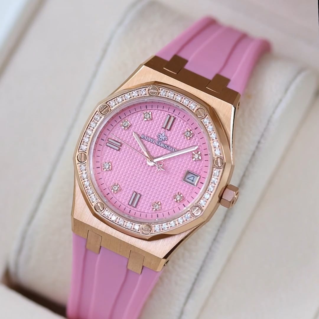 Its polished stainless steel case is framed with precision-set 5A cubic zirconia, creating a luminous halo that catches the light with every movement. The clean dial is finished with crystal hour markers and a subtle date window, blending delicate detail with everyday functionality. Protected by sapphire crystal and finished with a smooth, flexible silicone strap, it offers both durability and all-day comfort. With 5 ATM water resistance, The Celeste is made for women who want a timepiece that shines just as effortlessly as they do.