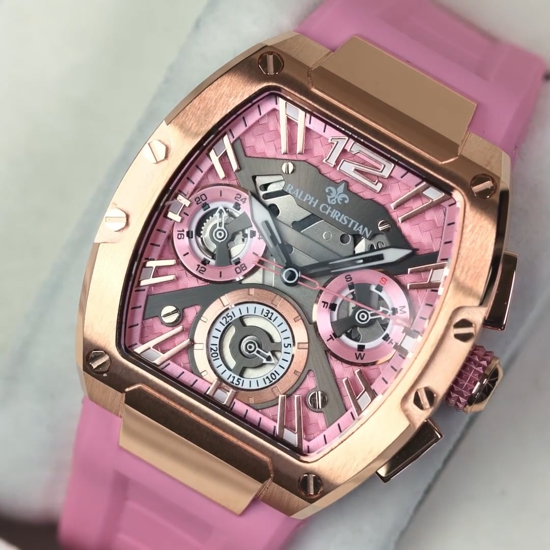 Its refined stainless steel case and curved sapphire-coated glass create a clean, contemporary silhouette that is as durable as it is beautiful. With three functional subdials to display the day, date, and 24-hour time, it blends practical detail with polished style. Finished with a soft, flexible silicone strap and 5ATM water resistance, this is the watch made for women who do it all and want a timepiece that keeps up.