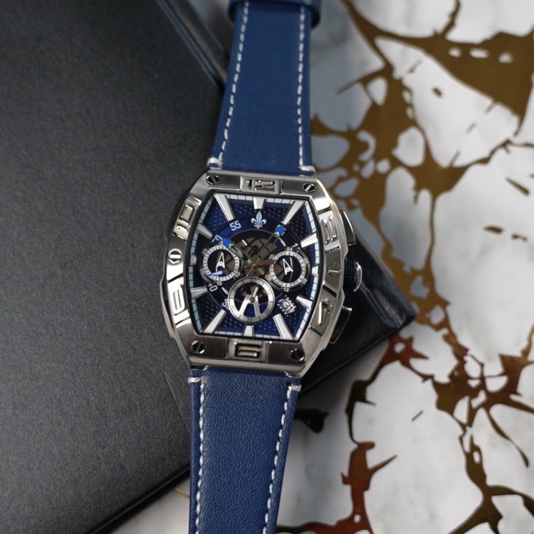 A watch fit for a king - the Intrepid Chronograph has arrived! Our first chronograph watch features our signature design, a high-precision Japanese Quartz movement, and a meticulously engineered premium stainless steel case. This daring wrist watch will get noticed for its bold look, its intricately stitched genuine leather strap, and substantial full steel casing with royal blue accents. Superior construction and an elegant design elevate this timepiece to another level. It features an easy-to-read dial with chronograph movement, 24-hour sub-dial & date function. Built for those with a penchant for details and exactitude.