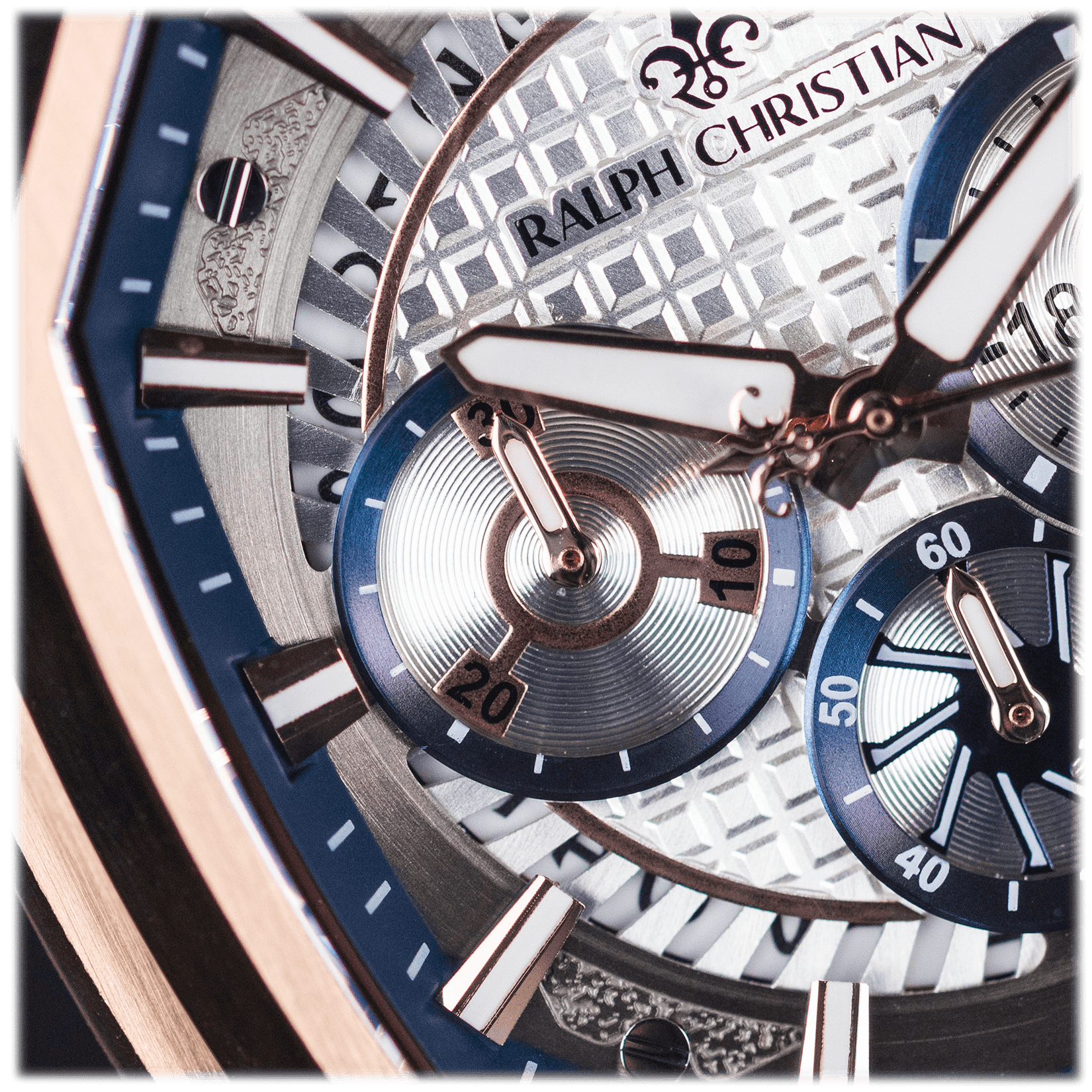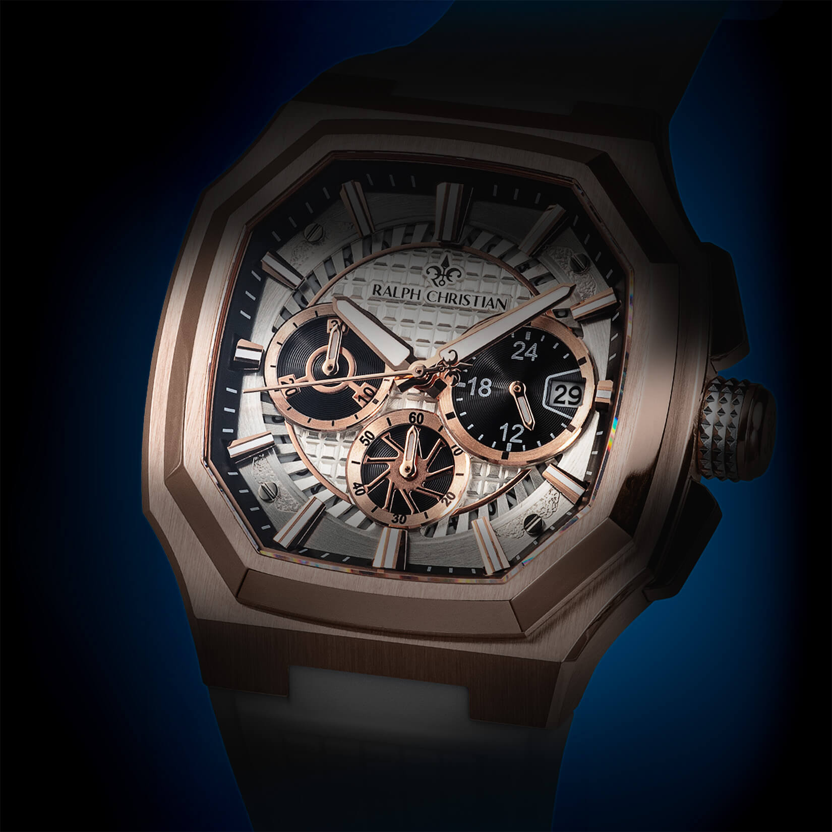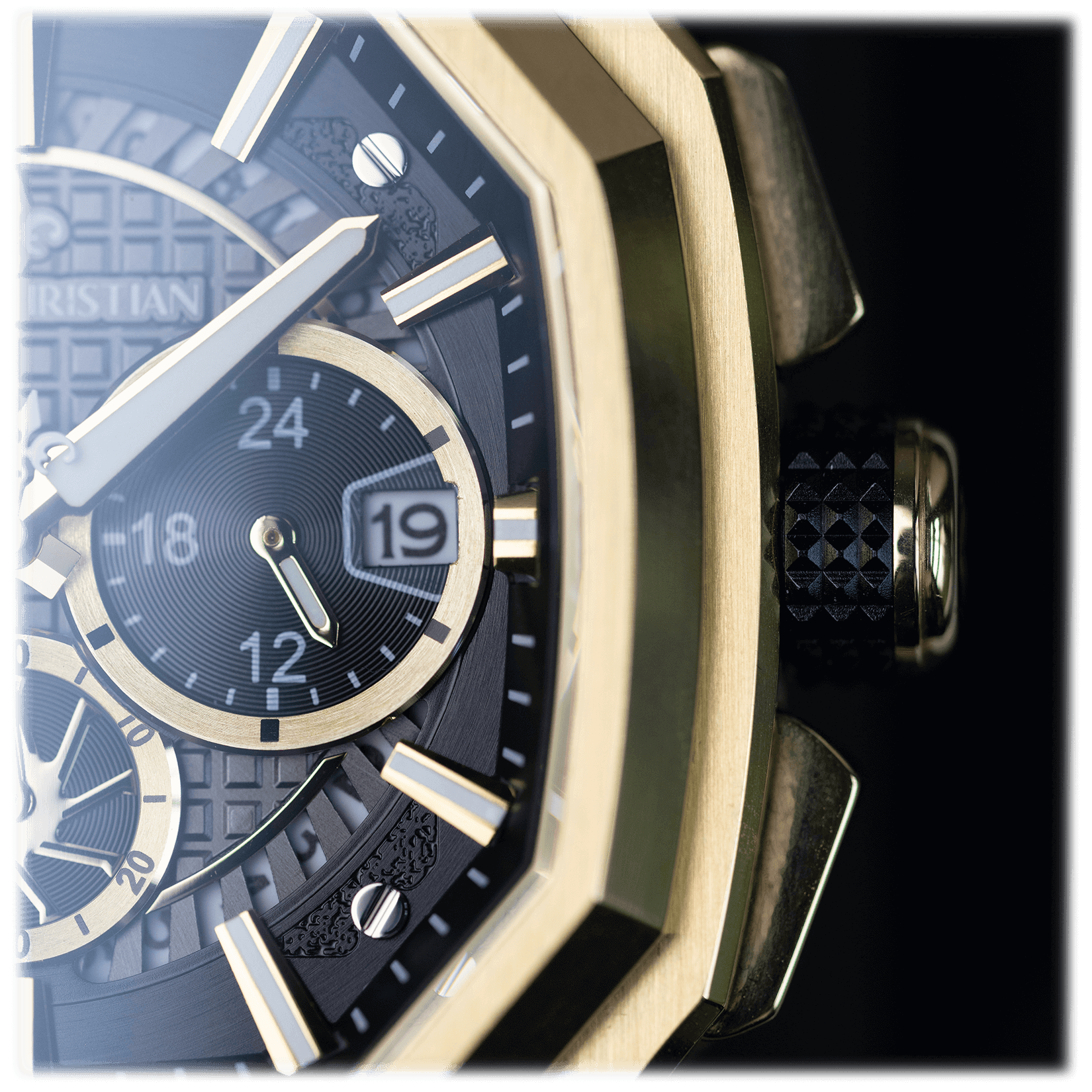 The Equinox Chrono’s dial is defined by its intricate multi-layered texturized dial, a design that plays with light and depth to create striking dimensionality. Paired with detailed subdials and refined markers, it reflects both craftsmanship and presence, giving the watch a bold, unmistakable identity.