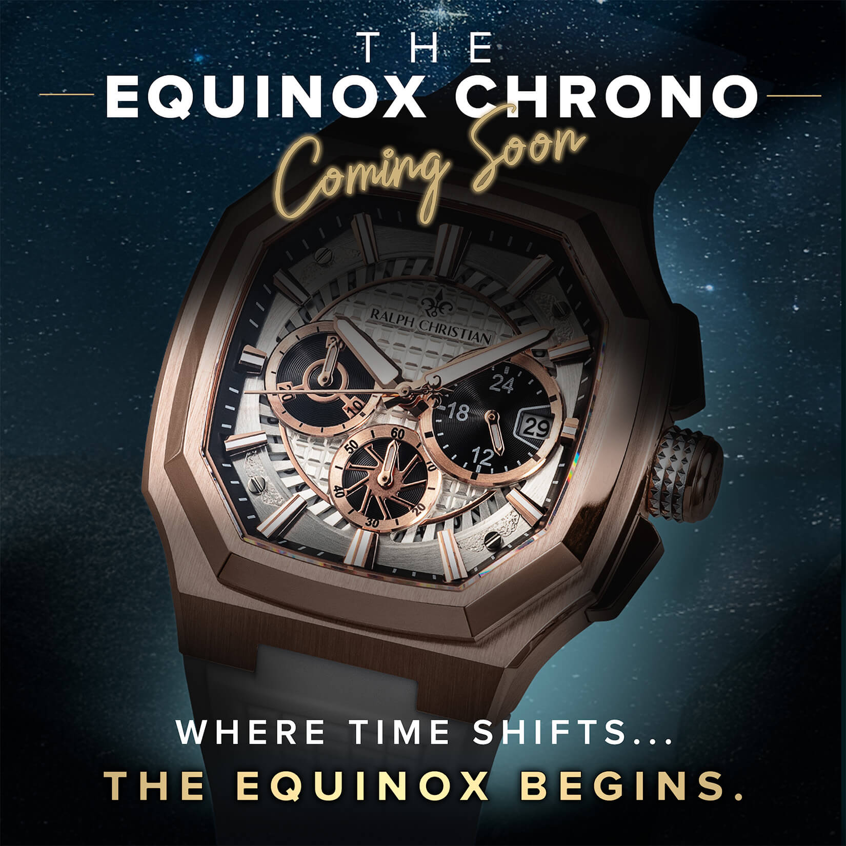 Protected by a scratch-resistant sapphire crystal and housed in a solid stainless steel case with a screw-down crown, the Equinox Chrono is engineered for durability. Designed to command attention and built to withstand daily wear, it delivers resilience without compromising refinement.