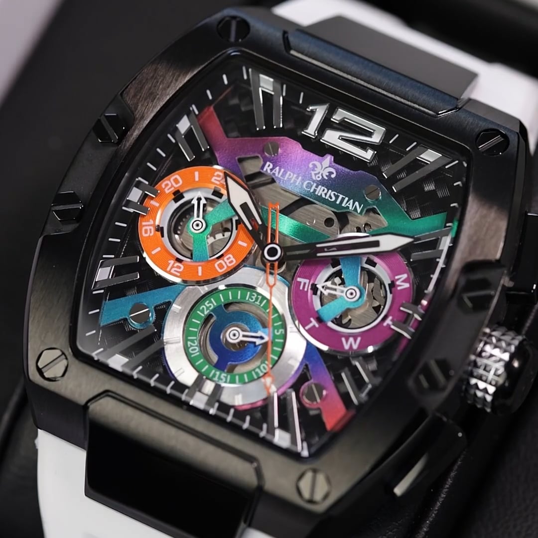 | Dial Feature: | DIAL | Part Skeletonized, Multi Layered Black & Aurora Burst Effect |